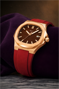 The rose-gold stainless-steel case delivers a strong yet elegant presence, paired with a striking textured dial and luminous hands for excellent readability. A convenient date window adds practical function without disrupting the clean aesthetic.